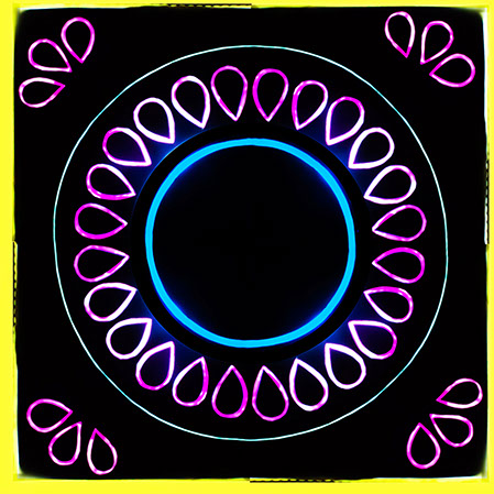 This series begins the process of unfolding and understanding darkness by presenting visualizations from my own meditations. In these sessions of deep retreat, the colors and patterns that emerged from the darkness of a still mind appeared so vividly and demanding that they remained long enough to recreate photographically.